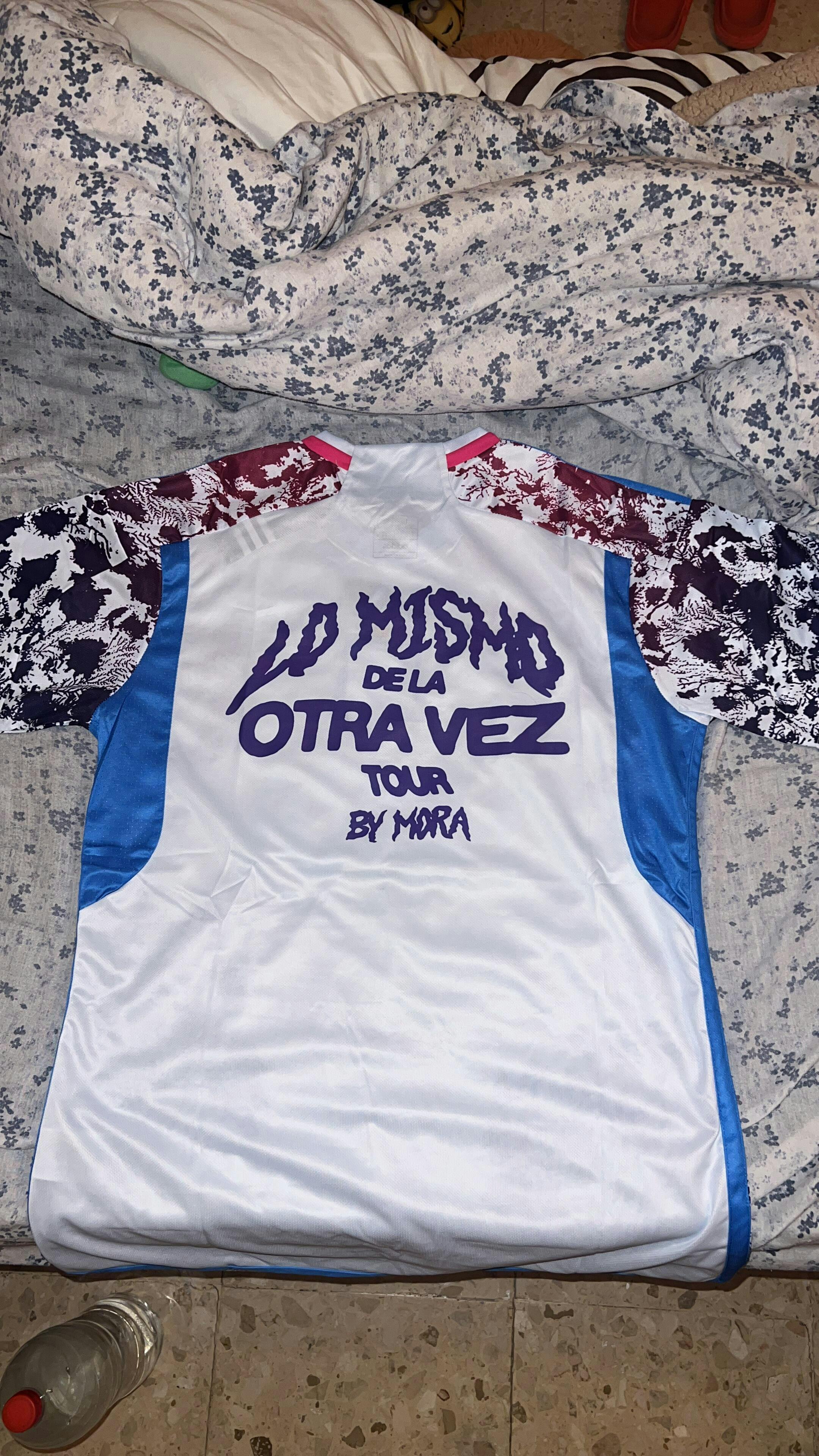 Esta camiseta une el dolor elegante de Mora con la versión más limpia y sobria de la selección española: la camiseta blanca.